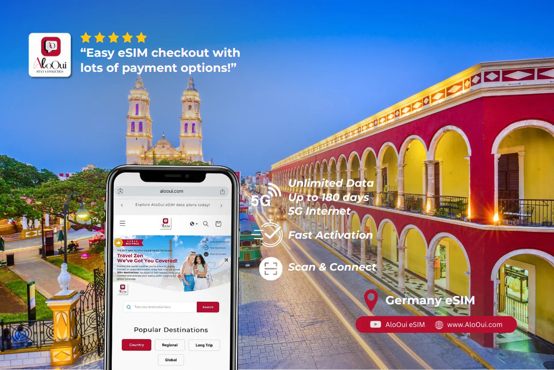 Stay connected while exploring Mexico with AloOui’s prepaid eSIM! The ideal solution for hassle-free 5G or 4G data across the country. Whether you're relaxing on the beaches of Cancún, touring the ruins in Tulum, enjoying the culture in Mexico City, or savoring food in Guadalajara, our flexible plans offer seamless connectivity. Choose from 1 GB to unlimited data with instant email delivery, hotspot support, no ID check, and strong nationwide coverage. Perfect for travelers, digital nomads, and business professionals on the go.