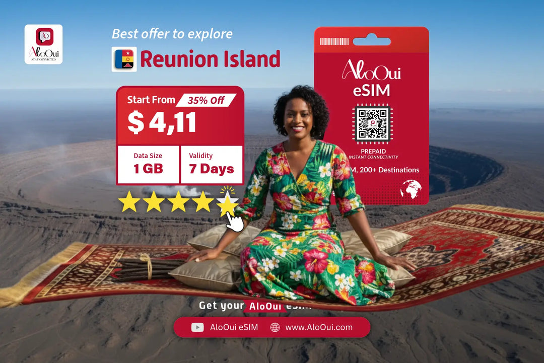 Stay connected while exploring Réunion with AloOui’s prepaid eSIM. The ideal solution for hassle free 5G or 4G data across the island. Whether you are admiring the volcanic landscapes of Piton de la Fournaise, relaxing along the beaches of Saint Gilles, or exploring the scenic trails of Cilaos, our flexible plans offer smooth and reliable connectivity. Choose from 1 GB up to unlimited data with instant email delivery, hotspot support, no ID check, and strong islandwide coverage. Perfect for travelers, digital nomads, and business professionals on the move.