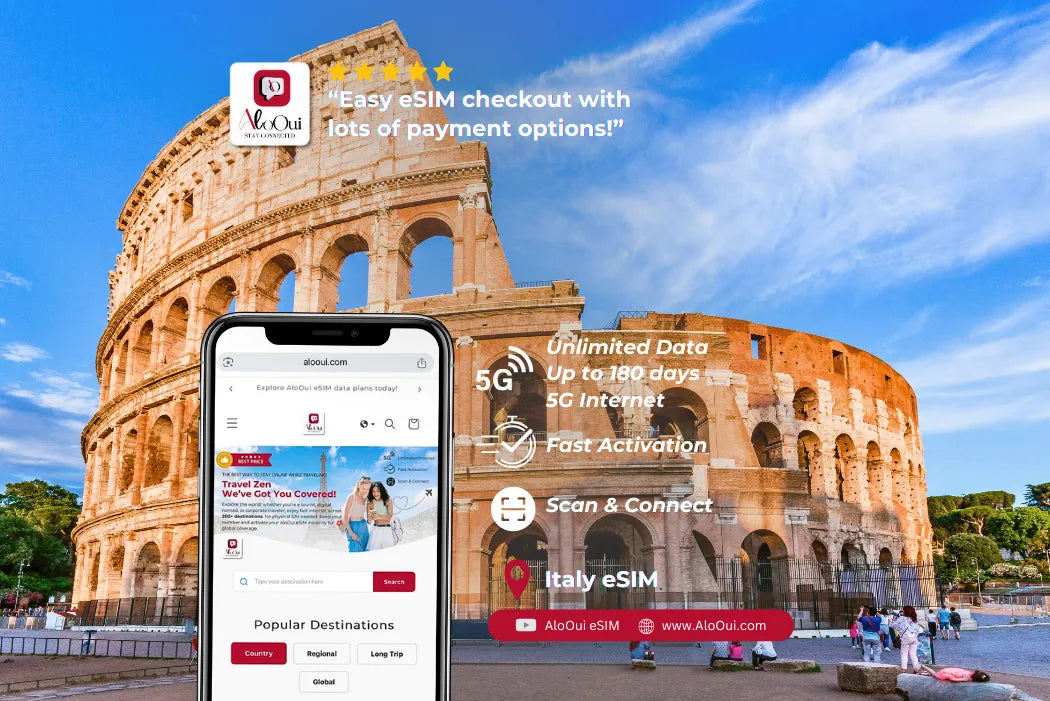 Experience seamless connectivity in Italy with AloOui’s prepaid eSIM, offering blazing fast 5G/4G LTE data in iconic cities like Rome, Milan, Venice, and Florence. Whether you’re touring historic landmarks or catching up on work, our flexible plans from 1GB to unlimited, instant email delivery, and hotspot support keep you online hassle-free. Ideal for tourists, business travelers, and digital nomads seeking smooth data coverage throughout Italy.