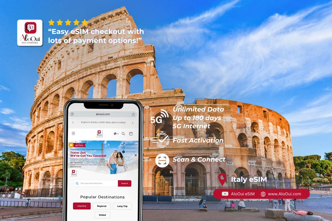 Experience seamless connectivity in Italy with AloOui’s prepaid eSIM, offering blazing fast 5G/4G LTE data in iconic cities like Rome, Milan, Venice, and Florence. Whether you’re touring historic landmarks or catching up on work, our flexible plans from 1GB to unlimited, instant email delivery, and hotspot support keep you online hassle-free. Ideal for tourists, business travelers, and digital nomads seeking smooth data coverage throughout Italy.