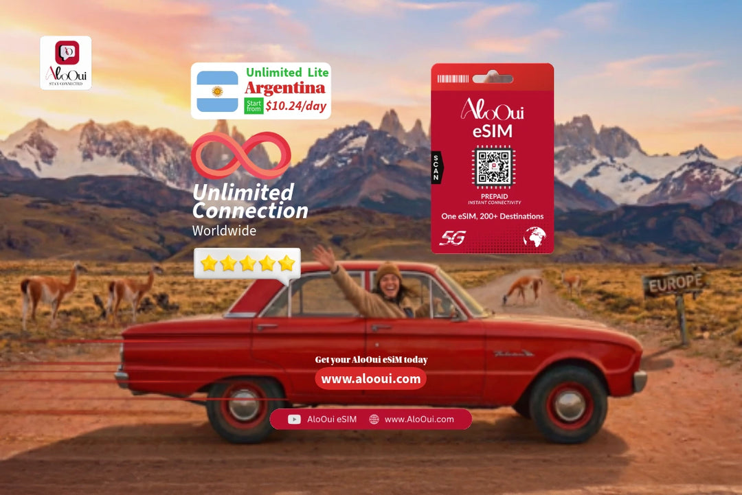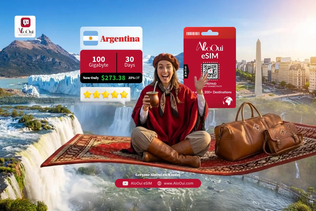Stay connected with AloOui’s Argentina prepaid eSIM, your perfect travel companion for seamless connectivity across Argentina. Enjoy high-speed 5G/4G LTE data in top destinations like Buenos Aires, Mendoza, and Córdoba. Whether you’re exploring vibrant cities or scenic landscapes, our flexible plans from 1 GB to unlimited offer instant email delivery, hotspot support, no ID verification, and reliable nationwide coverage. Ideal for vacationers, business travelers, and digital nomads who need fast, hassle-free data on the go.
