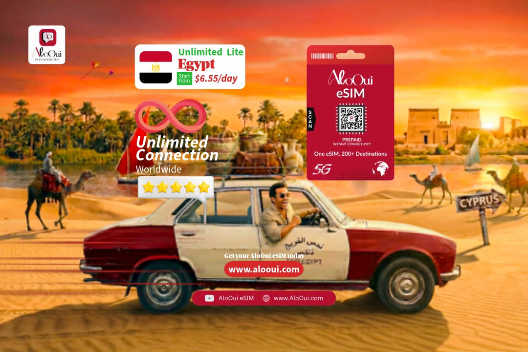 Explore Egypt with AloOui’s prepaid eSIM, offering high-speed 5G/4G LTE data across iconic destinations like Cairo, Alexandria, and Luxor. Whether you’re discovering ancient pyramids or cruising the Nile, stay connected with flexible plans ranging from 1 GB to unlimited data, instant delivery via email, hotspot support, and no ID verification required. Perfect for tourists, business travelers, and digital nomads alike.