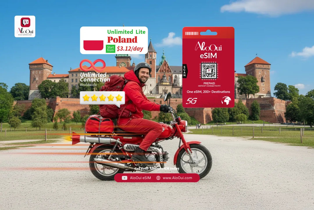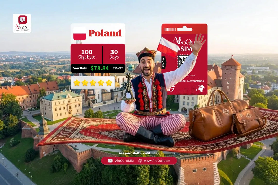 Stay connected with AloOui's Poland prepaid eSIM! Your perfect companion for smooth travel all across Poland. Enjoy high-speed 5G or 4G LTE data in top destinations like Warsaw, Kraków, Gdańsk, Wrocław, and Poznań. Whether you're exploring historic cities, cultural landmarks, or scenic countryside, our flexible data plans from 1 GB to unlimited keep you connected with ease. With instant email delivery, hotspot support, no ID verification, and nationwide coverage, it's the perfect solution for vacationers, business travelers, and digital nomads exploring Poland.